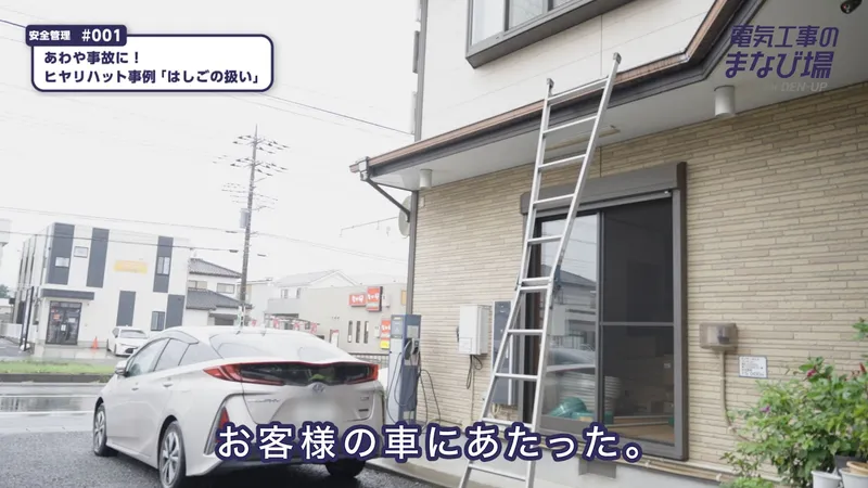 電気工事のヒヤリハット事例1:はしごの転倒